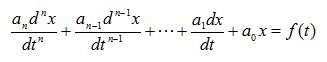 これはn階の定数係数線形微分方程式(aiは定数)と呼ばれる。