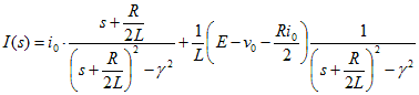 電流について解き、表10-1と10-2を使ってラプラス逆変換できるように、変形を行う。