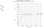比較のため2つの回路を併記したので、独立に可変させたい値が一つずつあります。通常のパラメトリック解析だけでは、実現できません。このような場合のテクニックとしてTopSpiceのテーブル関数を使っています。適当に変数を設定して(ここではわかり易いようにTAUとしました)、その変数下に実際に可変させたい素子値を表形式で設定できます。パラメトリック解析の設定では、ユーザー変数TAUの値を1,2,3と可変させます。 |
